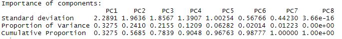 summary(pca1) ##calls a summary of the results