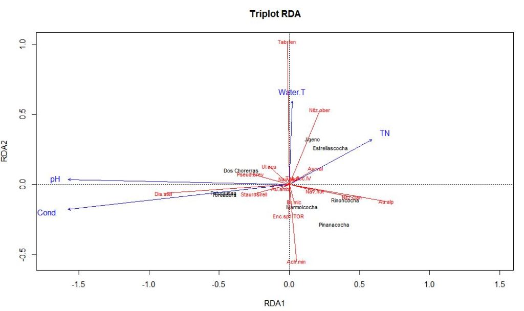 In this example, I use the vegan package in R to analyze diatom species abundance and physico-chemical environmental data from lakes in the Ecuadorian Andes. For this example, I will be using data from lakes in Cajas National Park.