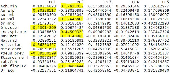 #PCA using diatom species